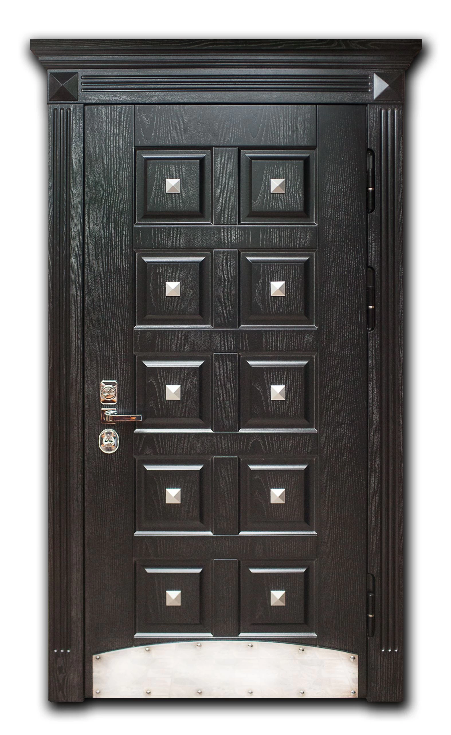 В основе конструкции элитных дверей в Северодвинске - стальной лист толщиной не менее 2.0 мм, дверное полотно укреплено ребрами жёсткости (могут быть горизонтальными, вертикальными, комбинированными). При желании можно сделать дверь из стали 3.0 и даже 4.0 мм. Но тут есть ряд особенностей. Полотно и каркас такой двери невозможно сделать из гнутого профиля, конструкция только сварная. Ну и надо помнить, что двери из толстого металла очень тяжёлые, а следовательно, травмоопасные.