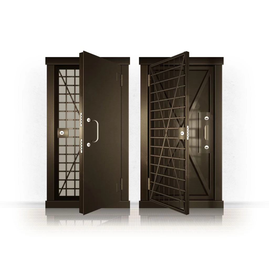 Металлические двери КХО и КХН представляют собой входные блоки, обладающие высоким уровнем взломостойкости и состоят из трех основных элементов: усиленного каркаса, сплошного металлического полотна и решетчатой двери. Дверной блок изготавливается из стального уголка 100*100 мм. Места крепления блока к стене цементируются и закрываются стальными наличниками шириной 40 мм. Крепеж заходит вглубь стены на 80 мм. В конструкции внешней створки монтируются ребра жесткости, для обшивки используется сталь толщиной не менее 3 мм. Внутренняя решетка изготавливается из прутка диаметром 16 мм. Размер ячеек решетки должен составлять не более 15 на 15 см. В точках пересечения прутья надежно приваривают друг к другу. В КХО и КХН необходимо поддерживать определенную температуру и влажность. Для этого внутреннее пространство глухой двери заполняется теплоизоляционным материалом, а по периметру двери приклеивается уплотнитель. Такие двери оборудуются замками с повышенным уровнем взломостойкости. Специализированные двери КХО и КХН в Северодвинске могут быть оснащены сигнализацией, в конструкции могут быть проушины для навесного замка и элементами для опечатывания. Если идет речь о двери в комнату хранения оружия, в створке оборудуется окно для выдачи оружия и спец. средств, которое накрывается стальной дверцей.