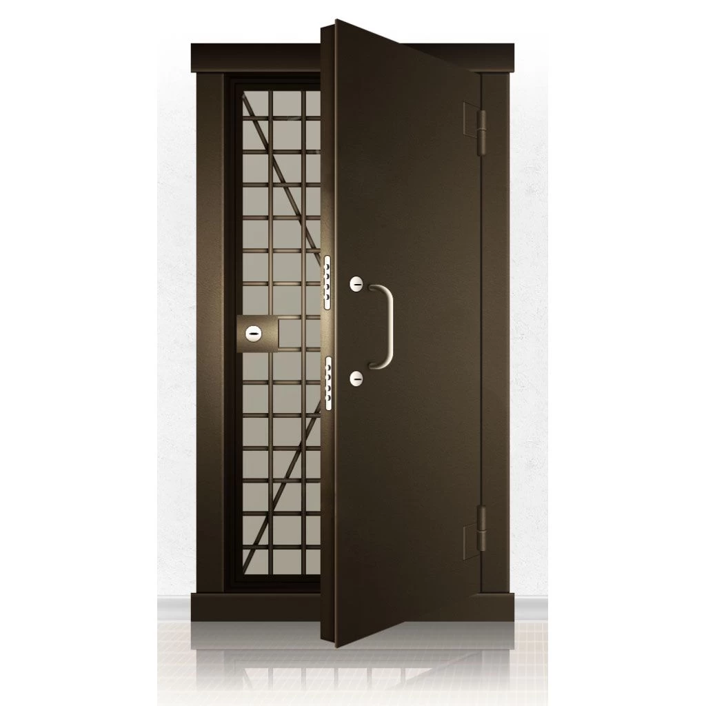 Металлические двери КХО и КХН представляют собой входные блоки, обладающие высоким уровнем взломостойкости и состоят из трех основных элементов: усиленного каркаса, сплошного металлического полотна и решетчатой двери. Дверной блок изготавливается из стального уголка 100*100 мм. Места крепления блока к стене цементируются и закрываются стальными наличниками шириной 40 мм. Крепеж заходит вглубь стены на 80 мм. В конструкции внешней створки монтируются ребра жесткости, для обшивки используется сталь толщиной не менее 3 мм. Внутренняя решетка изготавливается из прутка диаметром 16 мм. Размер ячеек решетки должен составлять не более 15 на 15 см. В точках пересечения прутья надежно приваривают друг к другу. В КХО и КХН необходимо поддерживать определенную температуру и влажность. Для этого внутреннее пространство глухой двери заполняется теплоизоляционным материалом, а по периметру двери приклеивается уплотнитель. Такие двери оборудуются замками с повышенным уровнем взломостойкости. Специализированные двери КХО и КХН в Северодвинске могут быть оснащены сигнализацией, в конструкции могут быть проушины для навесного замка и элементами для опечатывания. Если идет речь о двери в комнату хранения оружия, в створке оборудуется окно для выдачи оружия и спец. средств, которое накрывается стальной дверцей.