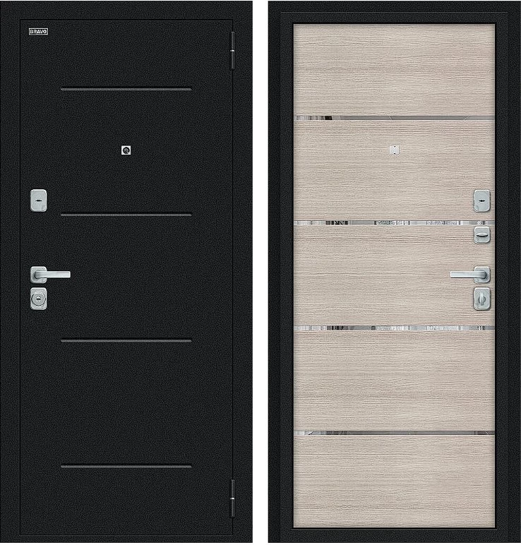 Надежная входная Дверь Браво Лайн/BChrome Букле черное/Cappuccino Melinga премиум класса по цене 33 451 руб. Большая толщина стали защитит от проникновения в ваш дом, квартиру или коттедж. Используется очень качественная фурнитура: замки, цилиндры, ручки, защелки. Покрытие и отделка двери изготовлено под внимательным контролем производителя. Дверь имеет долгий срок службы и гарантию.